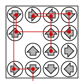 Each chip has an arrow painted on it. Thus, each chip on the field points in one of the following directions: up, down, left or right.
